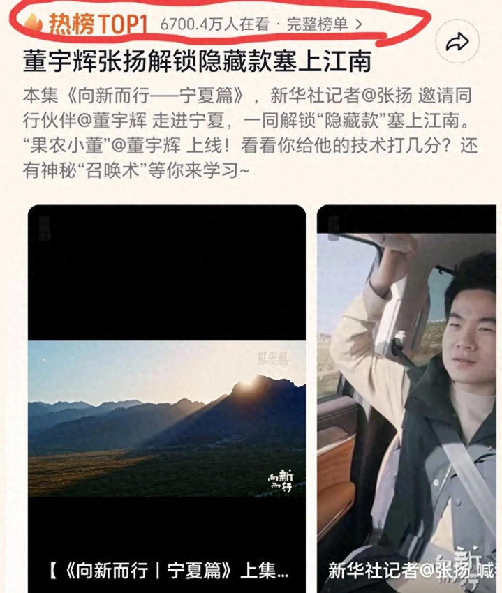 当时,董宇辉接到了新华社女记者张扬的邀请,一起前往宁夏贺兰山录制一档特别节目。