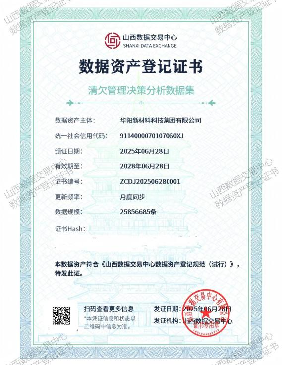 为深入贯彻国家《关于构建数据基础制度更好发挥数据要素作用的意见》及《山西省关于促进数据要素市场化配置改革的实施意见》,华阳新材(600281)料科技集团有限公司(以下简称“华阳集团(002906)”)于6月30日在山西数据交易中心完成“清欠管理决策分析数据集”合规登记,并取得《数据资产登记证书》。此次登记是华阳集团在探索数据资源资产化路径上取得的突破性进展,是山西数据交易中心赋能数据要素市场化改革的又一重要实践,更是全国煤炭企业首单数据资产登记,为山西省打造全国数据要素流通枢纽提供实践范本。